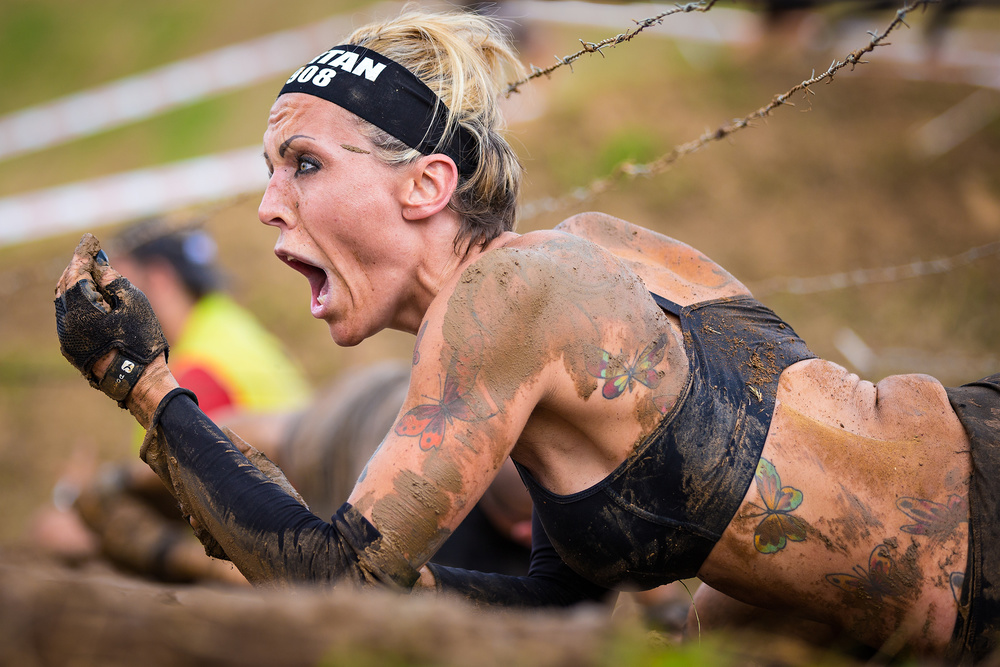 Because the photo is taken at close range, I can see and enjoy some very nice details. When starting her race, the athlete knew she would soon be covered with mud. And yet, she took the trouble to paint her nails and apply make-up on her face. Moreover the lovely tattooed butterflies on her body are a wonderful contradiction! It is details like these that also make this photograph so attractive.