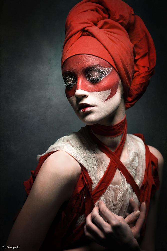 Siegart's brilliant and unique portraits all are a celebration of human beauty and grace, combining aesthetics and expressions. To Siegart, the lines on the face and body, the colours and patterns all form an exciting unit in which she can represent and recreate the special uniqueness of her models in all their beauty.She is not satisfied by reality alone, and shows us strange worlds by expressing darker feelings with a surreal and most artistic touch. Let yourself be enchanted by Siegart's fantastic world and learn more about this great lady.