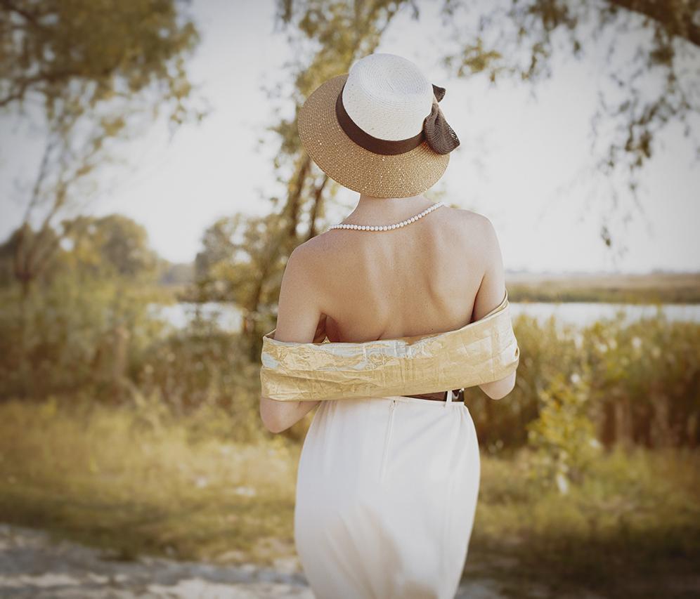 We have many good photographs and it is difficult to highlight our favorite one. But we will name a few. For example, the black and white image with two ladies wearing hats, a portrait from the series ‘Leisure Class’. It is a timeless classic image that represents elegance, class and style. The afternoon on that day of shoot was really hot and the way to location – long and sandy. We used tight retro style outfits in leather for our models and set the scene in front of the water. The atmosphere of the image submerges the spectator into a deep reflective mood…