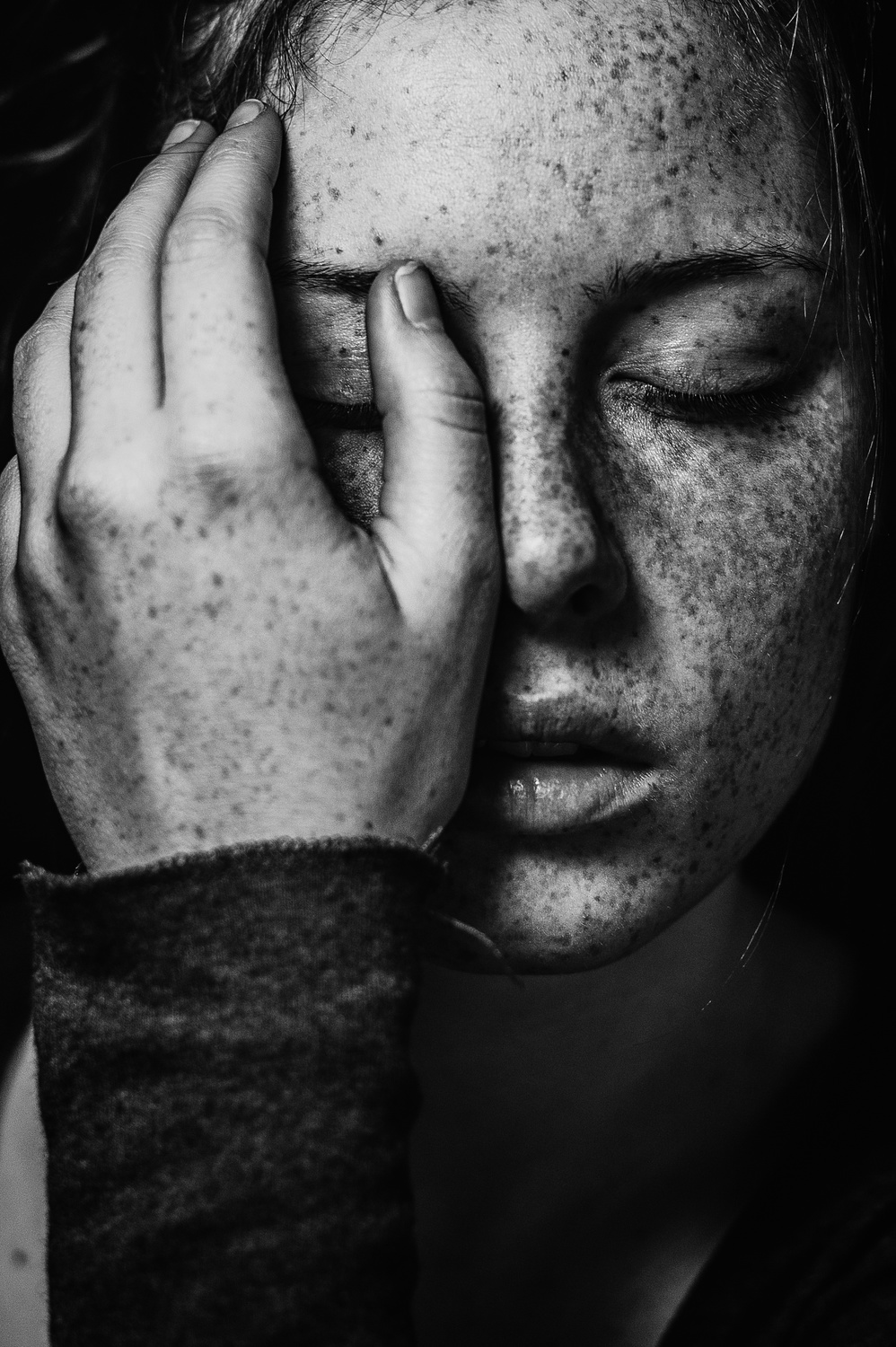 The key to the emotional portrait is the communication between the model and the photographer. I must do my best to help the model feel comfortable and safe. That's the only constellation under which the models relax and open themselves to me so that I can capture their real feelings. Empathy and knowledge of rules of positive verbal and non-verbal communication are crucial technical knowledge of portrait photographers.