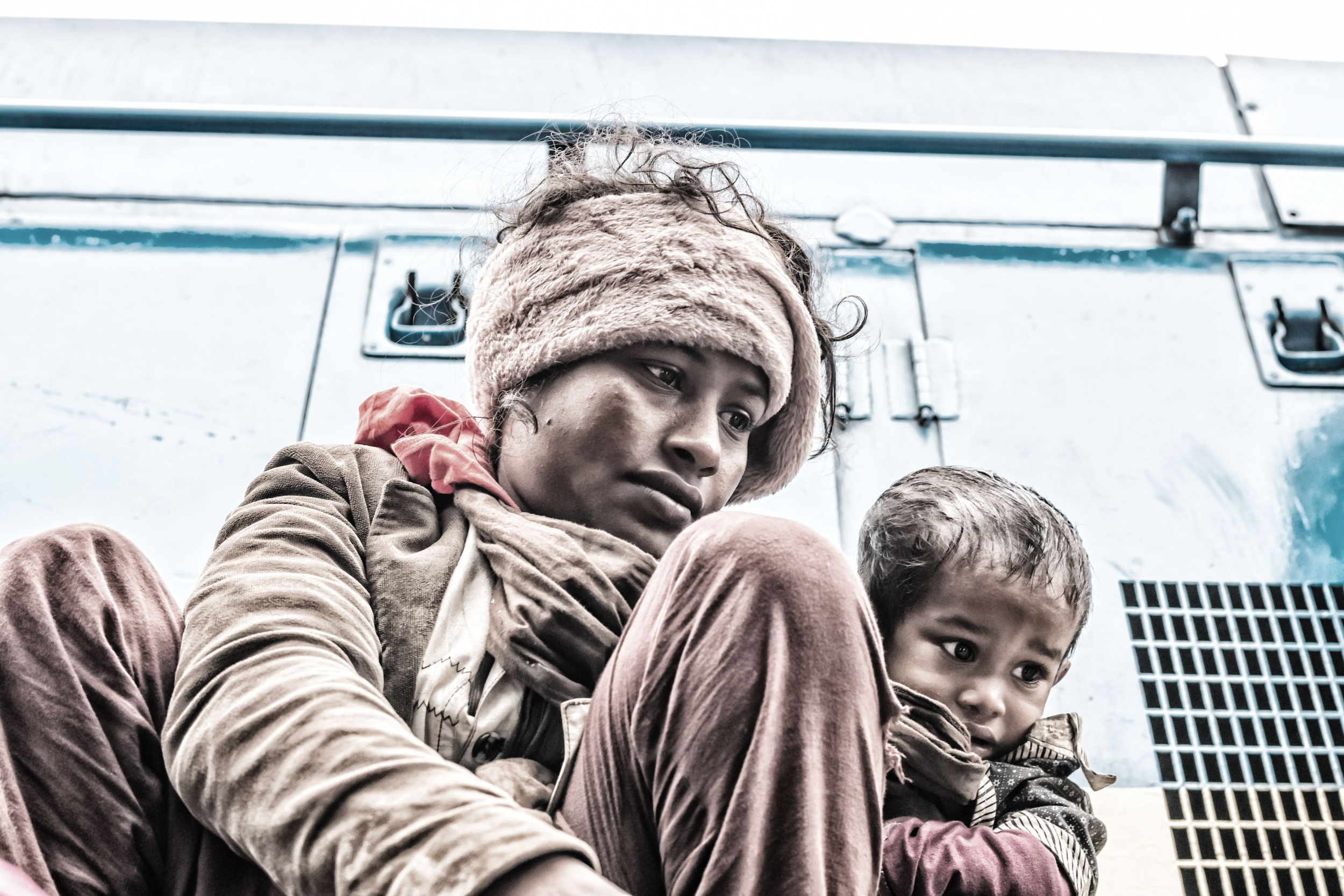 I was struck by the eyes of child and mother, perched on the roof of a locomotive.