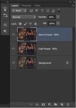 RAW image, Cold preset, Warm preset and final image